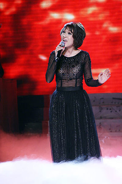 | Ca sĩ Thanh Thúy với bộ đầm đen quá mỏng (Ảnh: Linh Phạm) |